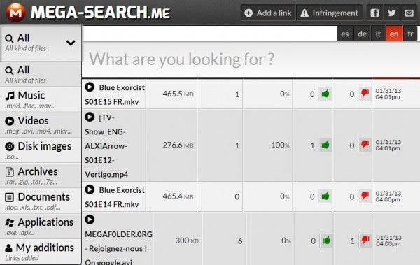 Com apenas uma semana de vida, o MegaSearch já consegue listar cerca de 80 mil arquivos, mesmo que muitos já estejam offline depois de serem denunciados por infringir direitos autorais. Agora é esperar para ver qual será a reação dos responsáveis pelo Mega.
