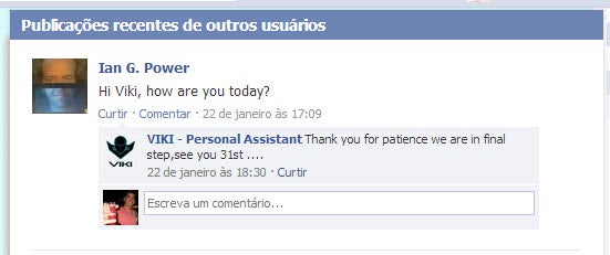 Há também uma página no Facebook que apresenta o VIKI como um assistente pessoal com uma incrível base de conhecimento exclusivo para BlackBerry 10. Em um dos comentários na rede social, a data de lançamento parece estabelecida para hoje, 31 de janeiro.