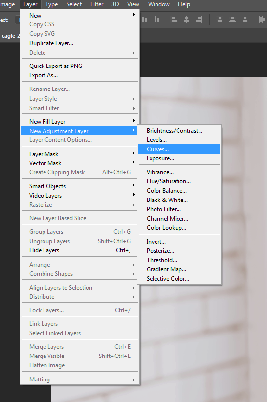 Se esse é você, é hora de você superar seu trauma. O painel das Curvas é o jeito correto de editar brilho e contraste, permitindo um maior controle do que o ajuste de Brilho/Contraste dedicado no painel pode possibilitar. Dê uma boa respirada funda, acalme sua mão tremendo e vá para Camada>Nova Camada de Ajuste> Curvas.