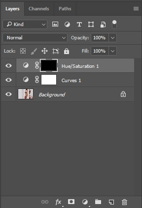 Agora qualquer mudança que você irá fazer aqui apenas irá afetas as áreas vermelhas da imagem. Jogue com a saturação, brilho e talvez nos sliders de hue, até que a área em questão esteja mais próxima do resto do ton de pele do sujeito, e então complete toda a Camada de Ajuste com preto, ou toque Ctrl+Backspace (Alt+Backspace nos Macs) para mascarar os efeitos do Ajuste de Camadas.