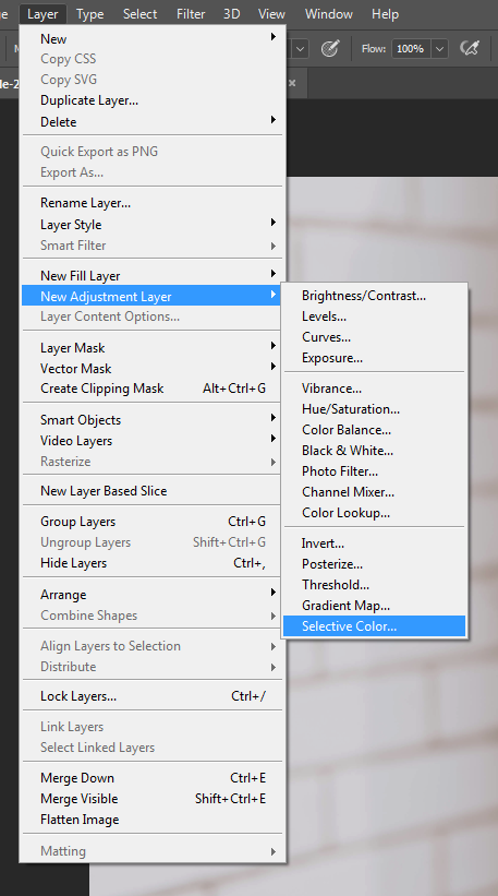 Na próxima vez que você precisar fazer edições em uma foto, ao ivés de ir para Imagem>Ajustes, opte por ir em Camadas>Nova Camada de Ajuste e selecione o ajuste necessário pelo menu.