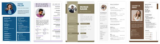 Incluir suas informações pessoais e experiência são apenas alguns aspectos de um currículo excelente. O que você quer é um design que foque nos elementos que você quer que o entrevistador veja primeiro. Para isso, você pode pesquisar vários layouts de currículo no Canva que atenderão às suas necessidades: