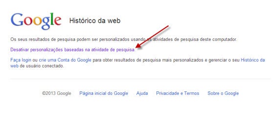 - Clique no link “Desativar personalizações baseadas na atividade de pesquisa.”