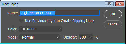 No lugar disso, vá para Camada > Novo Ajuste de Camada > Brilho/Contraste e novamente escolha um nome para o Ajuste de Camada.