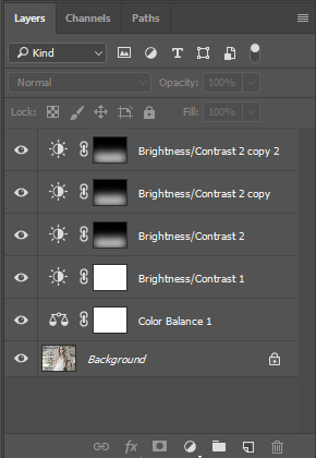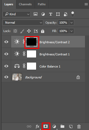 Digamos que nós quiséssemos escurecer o terço inferior da foto para dar uma maior sensação de solidez e balanço na imagem. Nosso próximo passo entao seria criar uma segunda camada no Ajuste de Camada para Brilho/Contraste (não reutilize a primeira que nós já criamos, pois isso irá desfazer seus efeitos). Agora mova o slider do Brilho para a esquerda até o nível de escurecimendo que você deseja ter na base da foto.