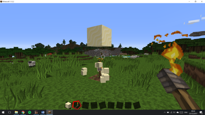 Como você deve saber, areia e pedras no Minecraft são afetadas pela gravidade e não podem voar no céu. Isso significa que se existe uma torre de pedra e areia e você remover o bloco inferior, todo o resto irá cair um por um. Mas se você remover o bloco inferior e muito rapidamente colocar uma tocha em seu lugar, a pedra ou a areia irá cair uma por uma, sendo destruidas quando atingirem a tocha, destruindo a torre inteira.