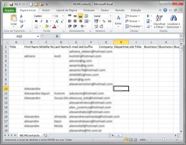 4. Abra este arquivo no Excel e todos os seus contatos estarão lá – um pouco bagunçados, mas estarão: