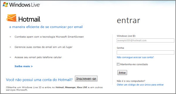 1. Acesse a sua página de contatos do Windows Live e faça o login: