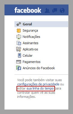 2. No menu à esquerda, clique em “editar sua linha do tempo”: