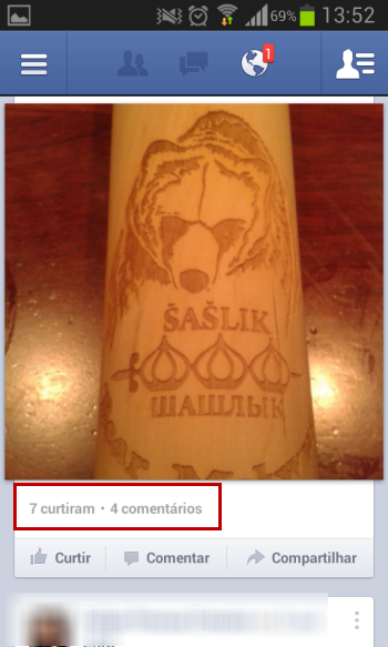 1. Entre no seu perfil e procure o post em que o comentarista mala deixou a sua marca. Depois disso, toque em “Curtir” / “Comentários”, como mostra a imagem: