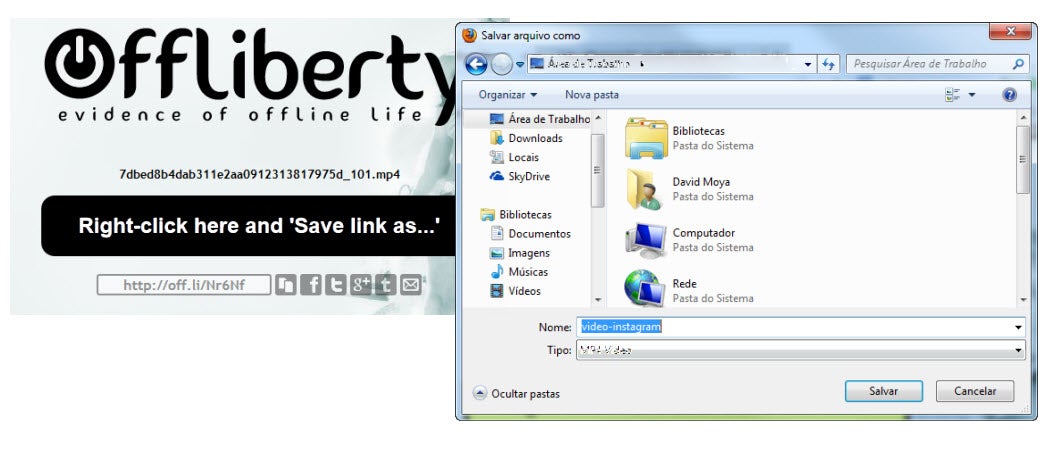 O sistema é muito parecido ao anterior. Copie o link do vídeo diretamente do Instagram, acesse www.offliberty.com e cole-o no campo correspondente.