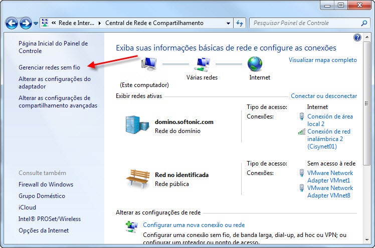 No Painel de Controle, abra “Rede e Internet”, vá para “Central de Rede e compartilhamento” e clique em “Gerenciar redes sem fio”, na barra lateral da esquerda.