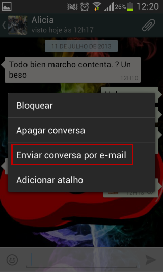 Como não dá para fazer isso, a solução é mandar o chat por e-mail e depois guardar num cantinho escondido do PC ou até mesmo imprimir. Não sabe como mandar um papo do WhatsApp para Android por e-mail? Sem problemas: a gente mostra como fazer em poucos passo.