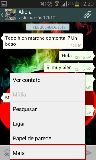 2. Depois de aberta a conversa, pressione o botão de menu do seu dispositivo e selecione “Mais”: