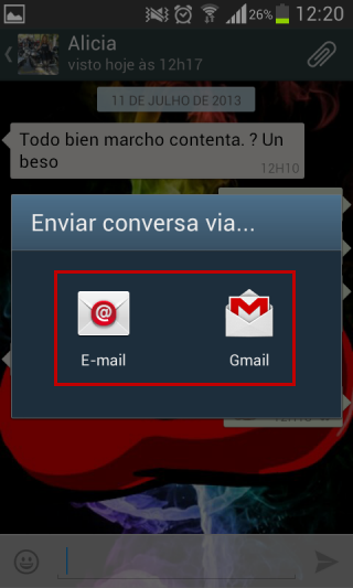 4. Agora, basta você escolher o aplicativo e mandar a sua conversa por e-mail!