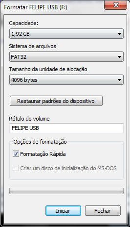 Entretanto, devemos levar em consideração que, para cada sistema operacional (Windows, Mac, Linux, etc), existe um formato específico. Exemplo: para Windows, o normal é usar FAT ou NTFS; no Mac, HFS e HFS+ e em Linux ext2 ou ext3. Dito isso, chega de papo furado e mãos à obra: