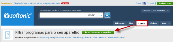 No Softonic é muito fácil! Na aba “Celular” da nossa página, observe que existe um banner em que você pode filtrar programas para a plataforma ou modelo do seu aparelho.