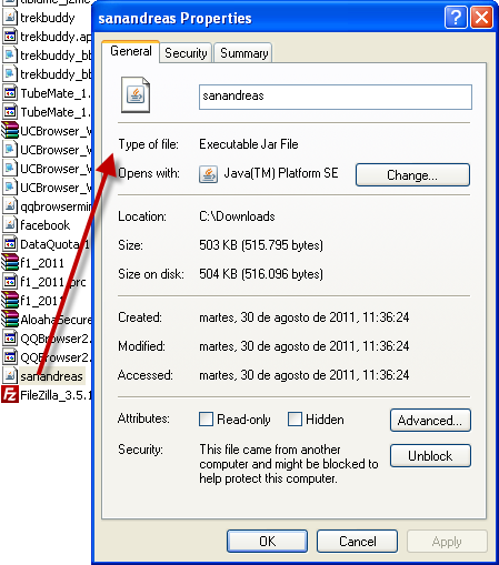 Antes de começar, é importante lembrar que aplicativos Java nada mais são do que arquivos Java executáveis com extensão .JAR. Para ter certeza que você tem o arquivo certo, clique sobre ele com o botão direito do mouse e escolha “Propriedades”: