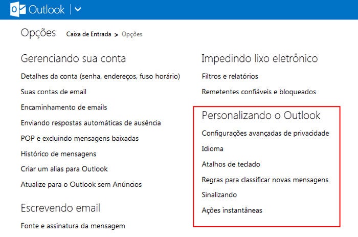 Como personalizar o Outlook.com
