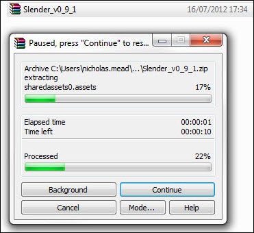 Na pasta em que você salvou o arquivo do Slender, clique com o botão direito do mouse no arquivo .ZIP e escolha “Extract Here”: