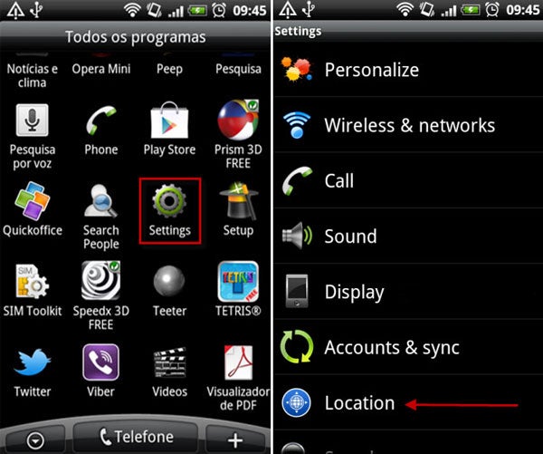 1. Em “Settings” (Configurações), selecione a opção “Location” (Localização):