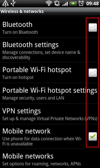 2. Desative as opções de Wireless e GPS caso não use tais conexões. Você verá que a redução no consumo de bateria será enorme: