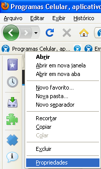 2. Imediatamente a barra aparece e você já pode começar a personalizá-la. Escolha qualquer um dos favoritos, clique como botão direito em cima dele e escolha “Propriedades”: