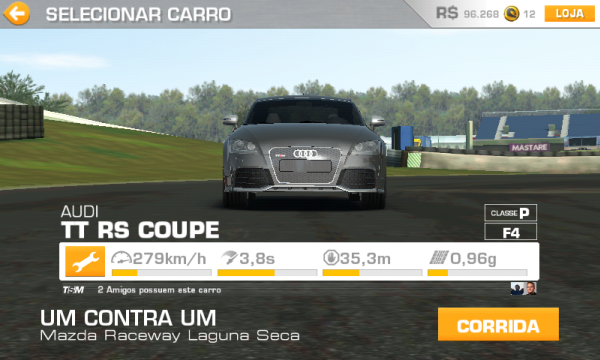 Entretanto, mesmo 100% atualizado, o TT não tem uma velocidade final alta e não pode competir com carros do calibre do Camaro ou do Mustang. Um dos “defeitos” do Real Racing 3 é que, em algumas categorias, a diferença entre os carros é tão grande que beira a covardia.
