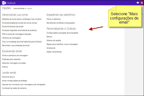 Essa é a “cabine de comando” Microsoft e por meio da qual você acessa, além da sua caixa de e-mail, todos todos os outros serviços agregados.