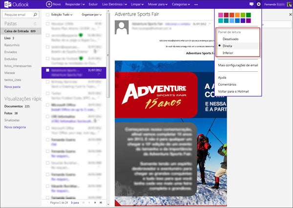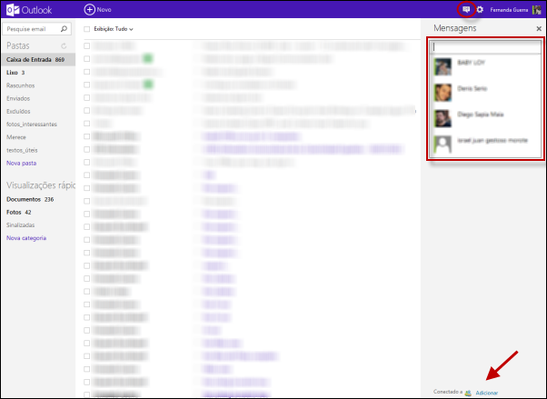 Agora você pode adicionar à sua caixa de entrada as suas redes sociais, seus contatos de bate-papo do Messenger, conversar com os amigos ali mesmo e acessar seus arquivos armazenados no servidor online SkyDrive, assim como editá-los direto pela internet.
