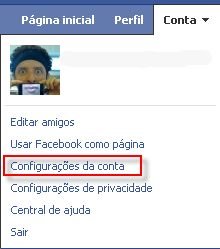 1. No canto superior direito do Facebook, clique em “Conta” e, em seguida, selecione “Configurações de Conta”: