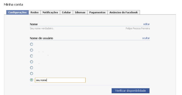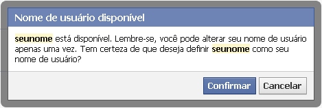 4. Escolhido o nome, o Facebook mostra a disponibilidade do mesmo e, ao confirmar a ação, você já tem uma URL totalmente personalizada para usar onde quiser.