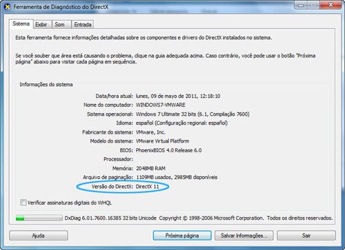 O processo é muito simples. Vá a Iniciar>Executar e escreva dxdiag. Aperte o botao Não da janela que se abre pedindo se quer verificar os controladores. Depois de alguns instantes aparece a janela final com a versão de DirectX.