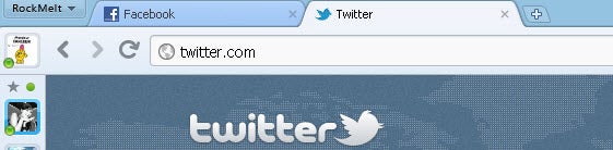 O RockMelt está voltado às redes sociais e permite integrar suas contas do Twitter e do Facebook. Na parte da esquerda uma aba mostra seus amigos online no Facebook. Basta um clique para conversar com eles ou ver a última atividade de cada um. Do lado direito, vários ícones permitem acompanhar as novidades no Facebook, no Twitter ou nos feeds RSS que você quiser. O botão “Share” permite compartilhar com seus contatos o conteúdo que achar mais interessante.