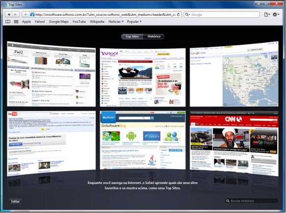 O que o Safari tem que falta aos outros navegadores?É óbvio que se você tem um Mac, a integração total com o Safari facilita muito sua vida. Para quem tem Windows, as vantagens não são tantas. No site oficial aparece uma mensagem que diz que o Safari é “o navegador mais rápido do mundo”. Segundo os nossos testes, o Chrome é o vencedor, mas o browser da Apple chega perto. O histórico de sites visitados e os favoritos mostrados em 3D são um verdadeiro colírio para os olhos.