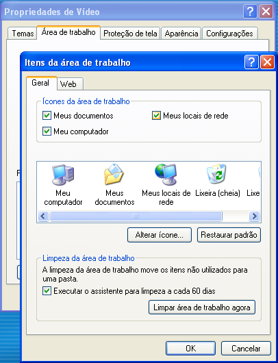 Quando você instala (ou reinstala) o Windows XP, alguns ícones são automaticamente criados na Área de Trabalho: é um padrão do Windows. Eles são “Meu Computador”, “Meus Documentos”, “Meus Locais de Rede”, “Internet Explorer” e “Lixeira”.