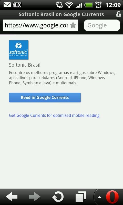 4. Ao abrir o browser, uma nova tela oferece a opção para adicionar o Softonic Brasil no Google Currents. Toque em “Read in Google Currents” para iniciar o aplicativo:
