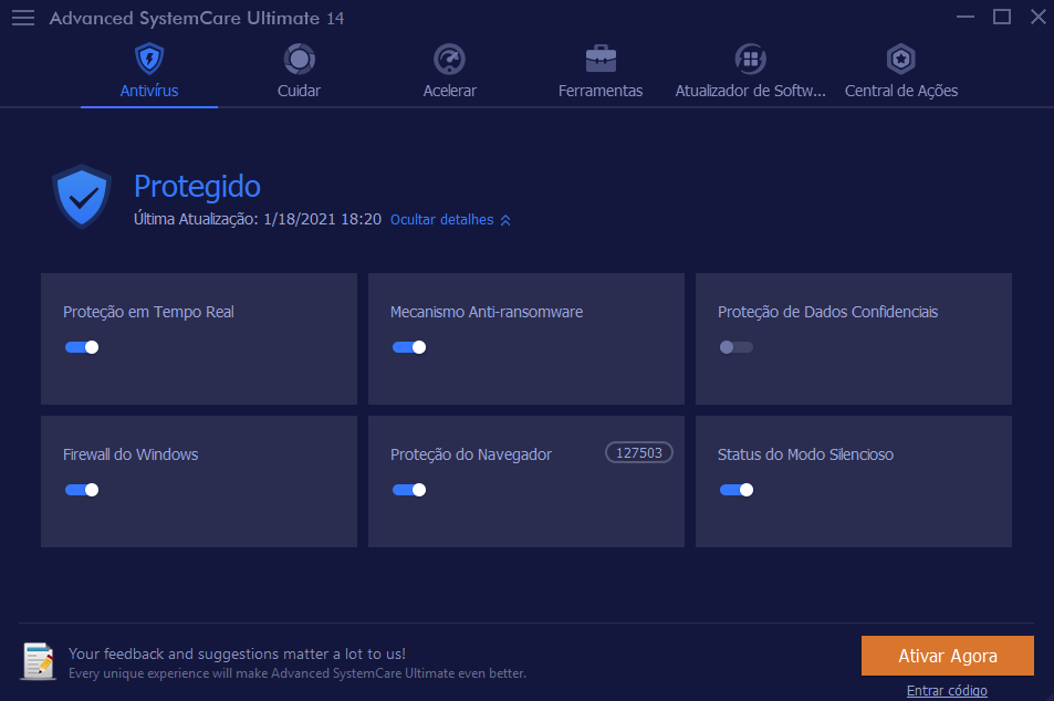 Para começar, a parceria contínua da IObit com a Bitdefender – uma produtora líder no mercado de software antivírus – levou a um extenso banco de dados de malware. Agora, o SystemCare Ultimate 14 não apenas o protegerá contra as ameaças usuais de Trojans, spyware e ransomware, mas também se protegerá contra os vírus únicos que estão surgindo mais rápido do que nunca ao entrarmos em 2021. O algoritmo e o mecanismo de defesa do IObit funcionam de forma incansável no segundo plano de toda a sua atividade para detetar estas ameaças e eliminá-las em tempo real.