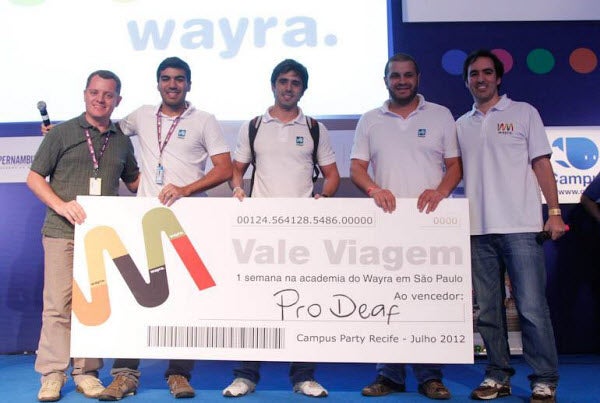 ProDeaf recebe prêmio Wayra Contest, que reconhece as melhores ideias de negócios, na Campus Party Recife