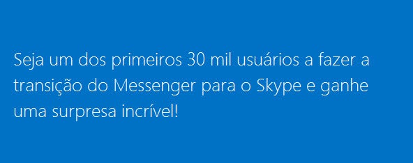 Os primeiros 30 mil usuários a fazer a transição do Messenger para o Skype vão ganhar uma surpresa da Microsoft: um vale-presente no valor de 20 reais para comprar um ingresso para o filme “Homem de Ferro 3”, que estreia na próxima sexta-feira no Brasil, 26 de abril. Caso o preço do ingresso desejado seja superior ao valor de 20 reais, o usuário terá direito a um desconto no mesmo valor para arcar com as despesas adicionais.