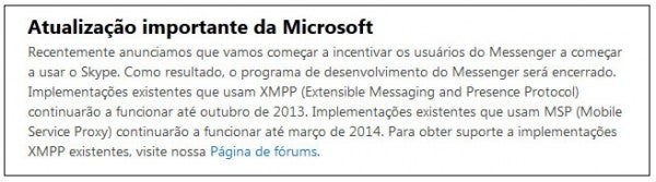 Já os que usam MSP (Mobile Service Proxy) poderão ser usados por mais tempo, até março de 2014. Neste grupo, estão aplicativos como o Pidgin, o Trillian ou o Digsby.