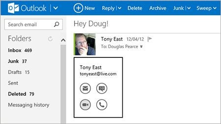 1. Procure por um contato no Outlook. Verifique que ele está disponível, seja no Messenger ou no Skype.
