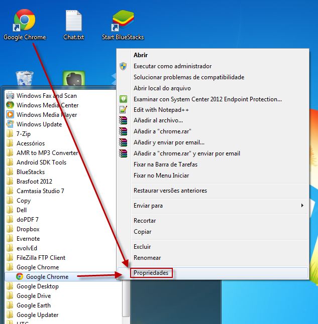 Clique com o botão direito do mouse e abra as Propriedades: