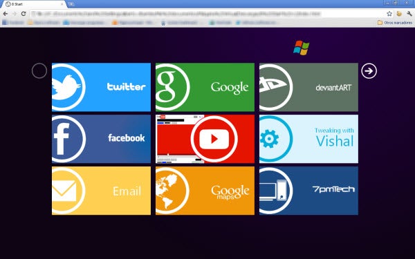 Imagine dar uma interface totalmente renovada ao seu Internet Explorer ou ao seu Firefox? Com o 8 Start, isso é moleza graças ao visual de “app store” do plugin. O bom é que funciona em vários navegadores e a instalação é bem simples: descompacte o arquivo e, na pasta criada pelo 8 Start, clique em “index”. O seu navegador padrão roda o aplicativo automaticamente e fica com esta cara: