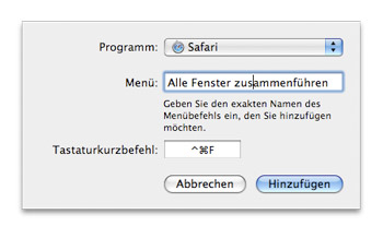 Die meisten Menübefehle des Systems oder der Programme unter Mac OS X lassen sich anstatt mit der Maus auch mit Tastenkombinationen aufrufen. Hat man sich diese einmal gemerkt arbeitet man damit unter Umständen wesentlich schneller als mit der Maus. Allerdings haben nicht alle Funktionen eine solche Tastenkombination. Merkt man, dass man eine bestimmte Funktion oft nutzt, kann man Tastenkürzel auch selber anlegen.
