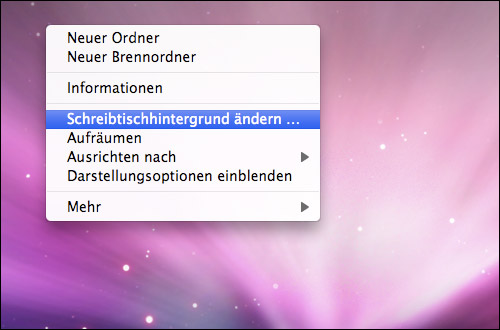 Per Rechtsklick ruft man Schreibtischhintergrund ändern auf. Alternativ wechselt man in der Systemsteuerung in den Punkt Schreibtisch & Bildschirmschoner.