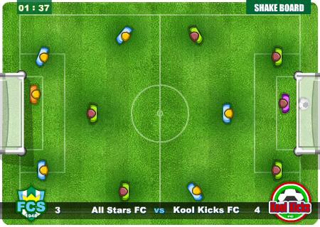 Tischfußball einmal anders: In dem Flash-Spiel Elastic Soccer tritt man mit elastischen Fußballern gegen den Computer an. Indem man die auf einer Metallfeder sitzenden Figuren mit der Maus spannt und loslässt, passt man den Ball im Team hin und her oder schießt auf das Tor. Sobald der Gegner im Ballbesitz ist, steuert der Spieler mit gedrückter Ctrl-Taste und Maus den Tormann und verhindert so Treffer. Denn Vorsicht: Wer bei Elastic Soccer einmal in Rückstand gerät, wird sich gegen den recht starken Computer schwer tun.