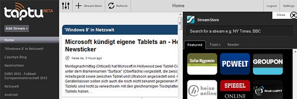 Das Nachrichtenangebot im Netz ist riesig. Eine personalisierte Nachrichtenseite hilft, aus der Masse die interessanten Perlen herauszufiltern. Taptu bietet mit Apps für verschiedene mobile Plattformen (Android, iOS, Blackberry Playbook, Samsung Bada und Kindle) und einer Web App die optimale Kombination für die ganz persönliche Nachrichtenseite.