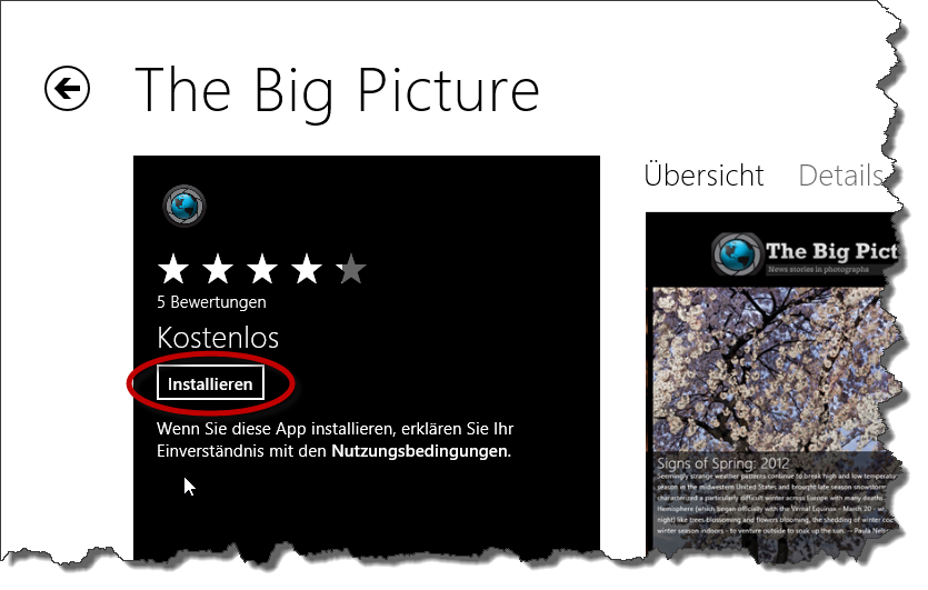 Sobald die App installiert ist, erscheint eine kleine Benachrichtigung am oberen rechten Bildschirmrand. Über das entsprechende Symbol in der Kachel-Oberfläche können Sie die App starten.