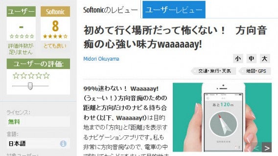 Waaaaay! ist die wohl einfachste Navigations-App der Welt. Gedacht für Fußgänger navigiert mit Waaaaay! selbst der größte Kartenschwachmat. Ein Pfeil deutet in die Richtung, in der das Ziel liegt. Eine Entfernungsanzeige gibt an, wie weit das Ziel entfernt ist. Die japanische Softonic-Redakteurin Midori Okuyama ist schwer begeistert und sagt, dass der Weg über Straße so wieder Spaß macht. Die App ist auch auf dem Fahrrad oder im Auto zu gebrauchen.